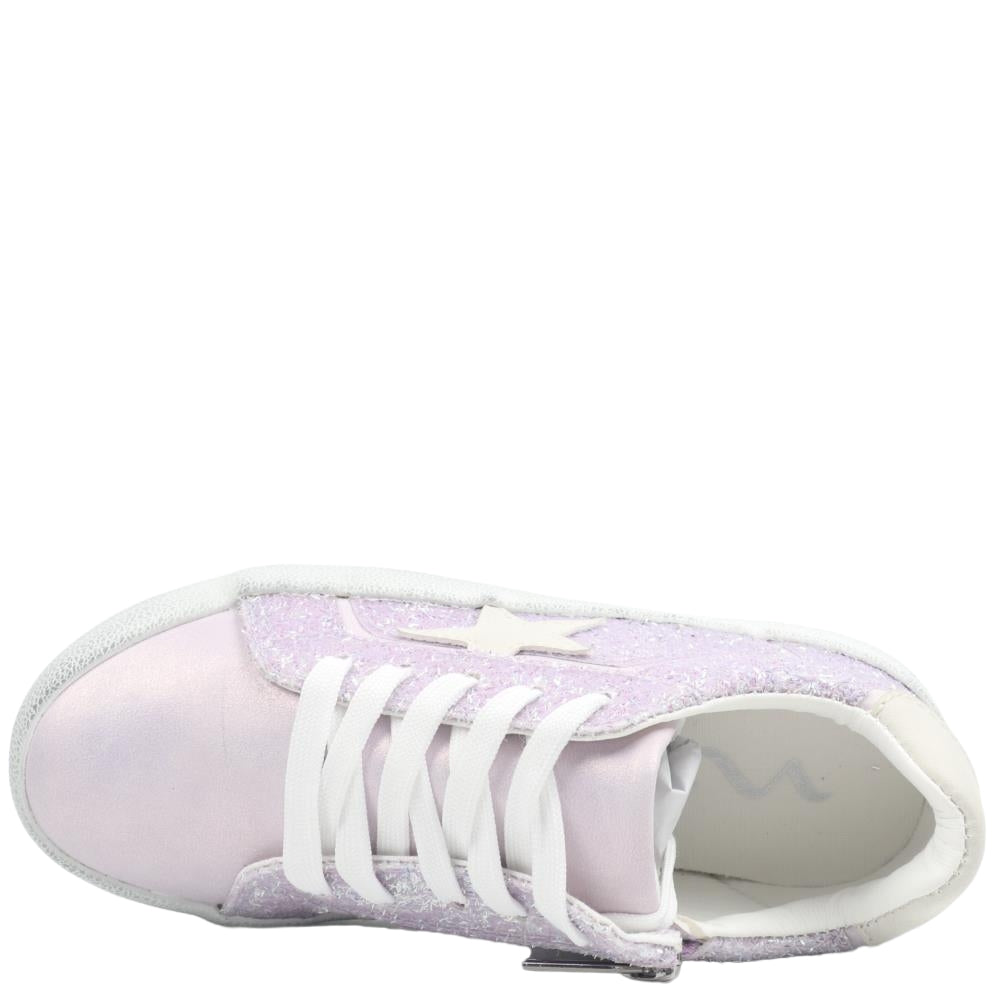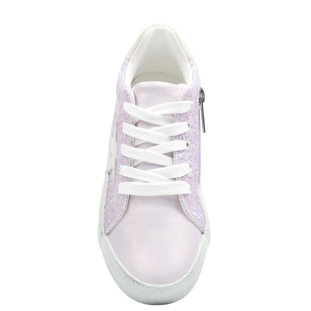 LIGHT PURPLE GLITTER LOW TOP LACE UP SNEAKERS