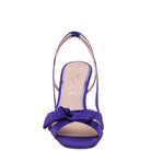 MIDNIGHT PLUM SATIN WITH BOW SLINGBACK SANDALS ON A MID-HEEL