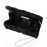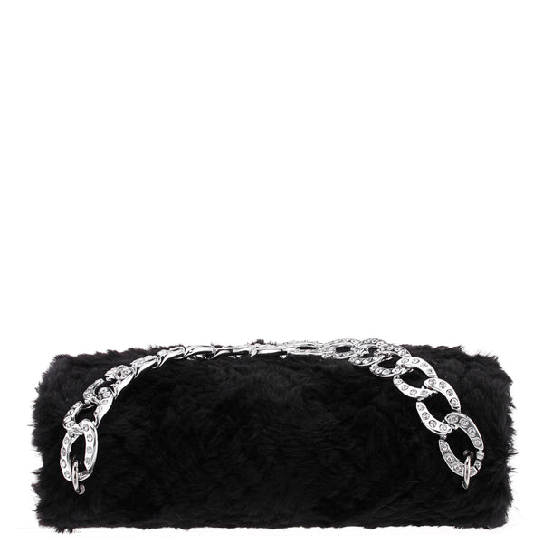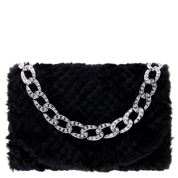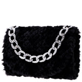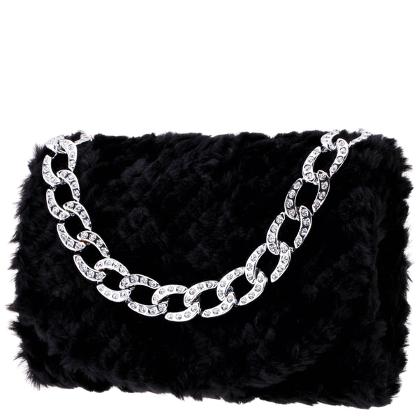 FAUX FUR FLAP BAG W/CRYSTAL CHAIN