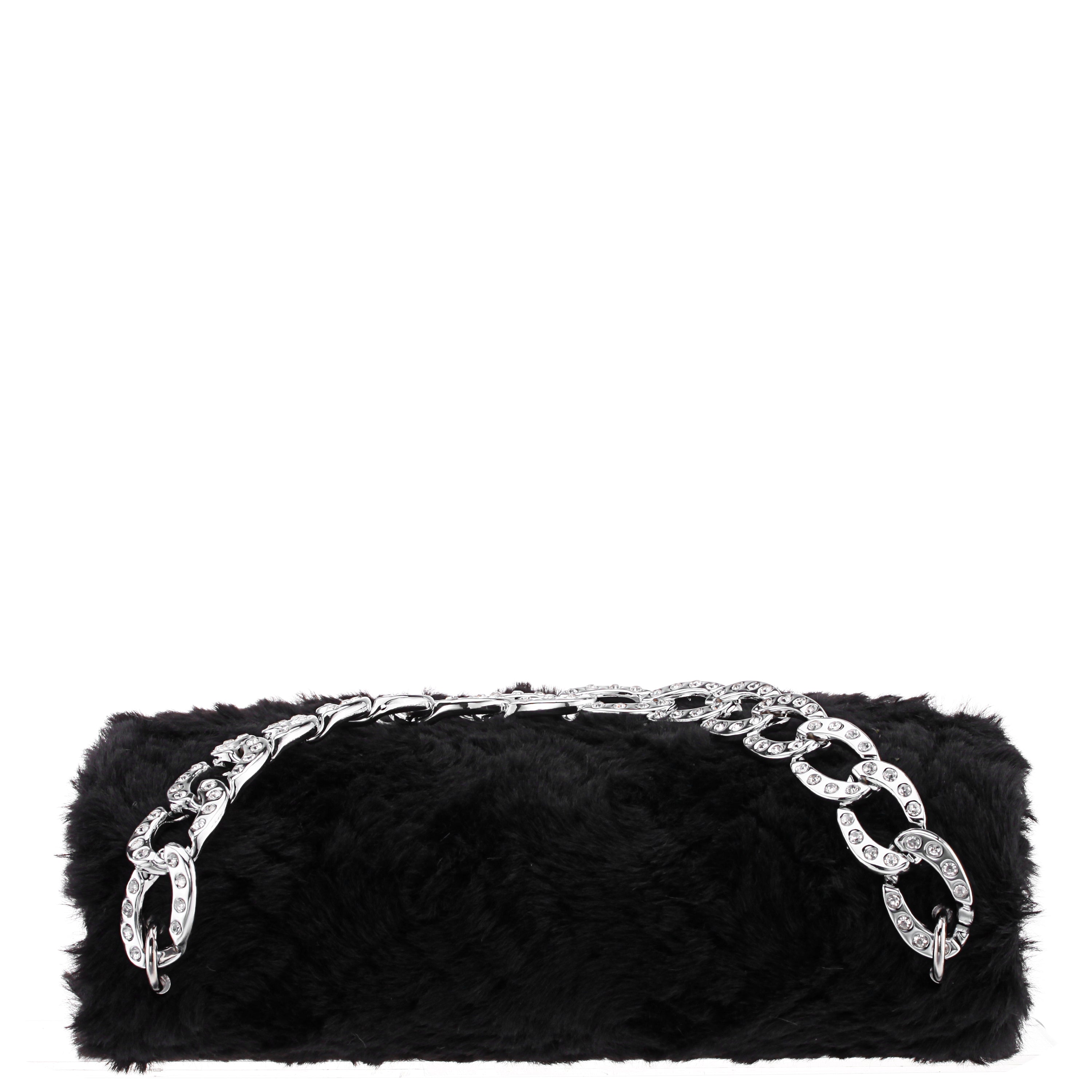 FOLDOVER CLUTCH FAUX FUR 100% POLYESTER CRYSTAL CHAIN 8" x 5.125" x2.375" back interior wall 44'' TON O-CHAIN MAG SNAP