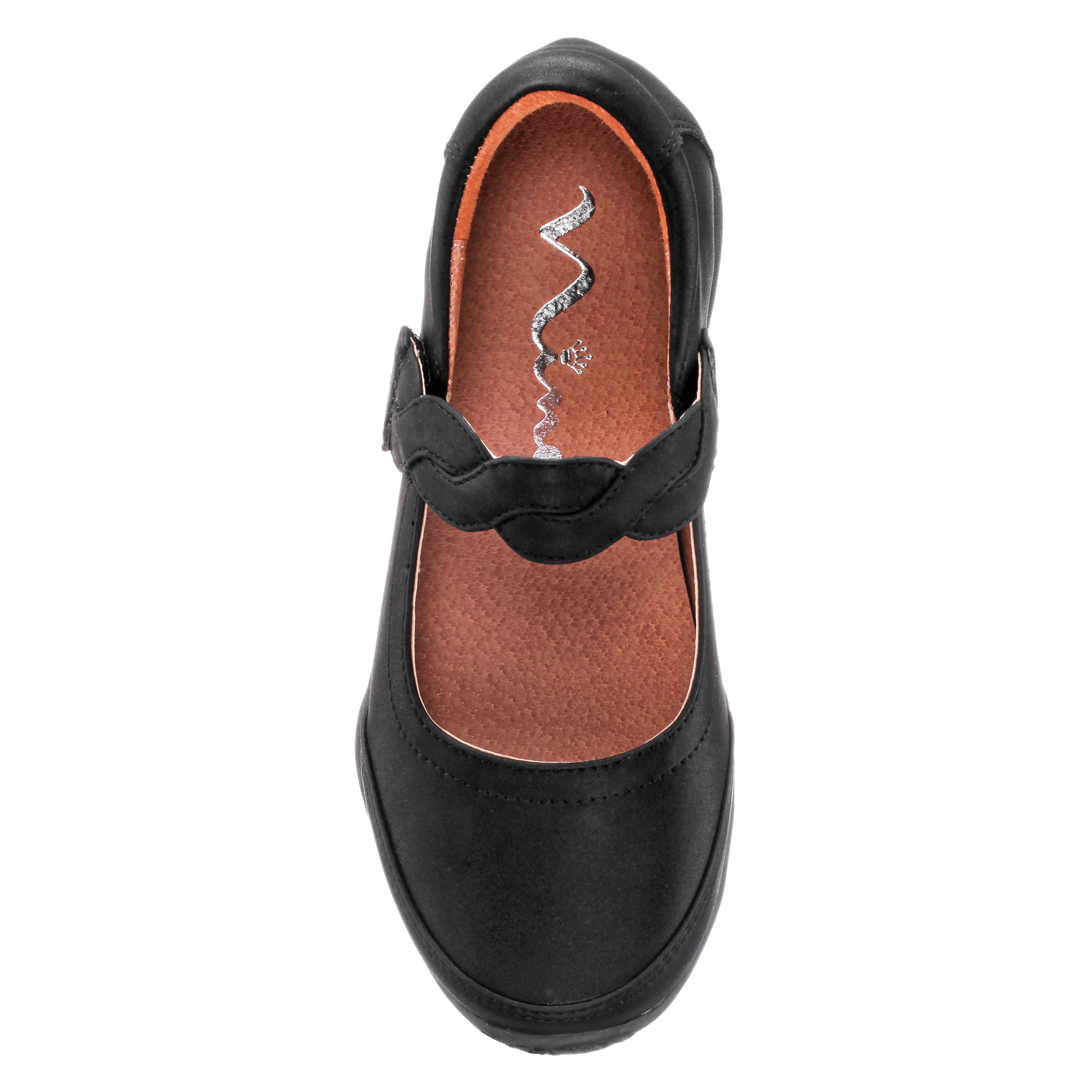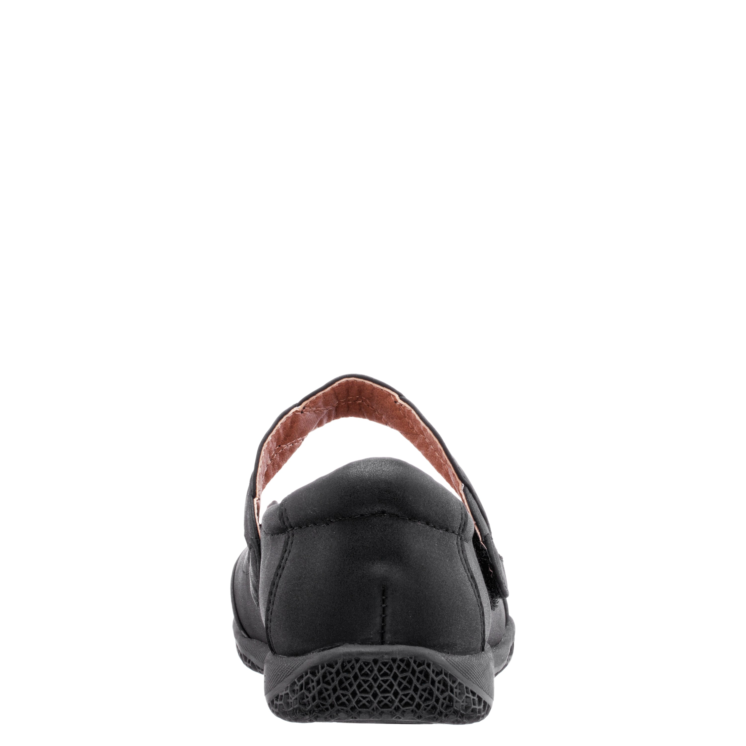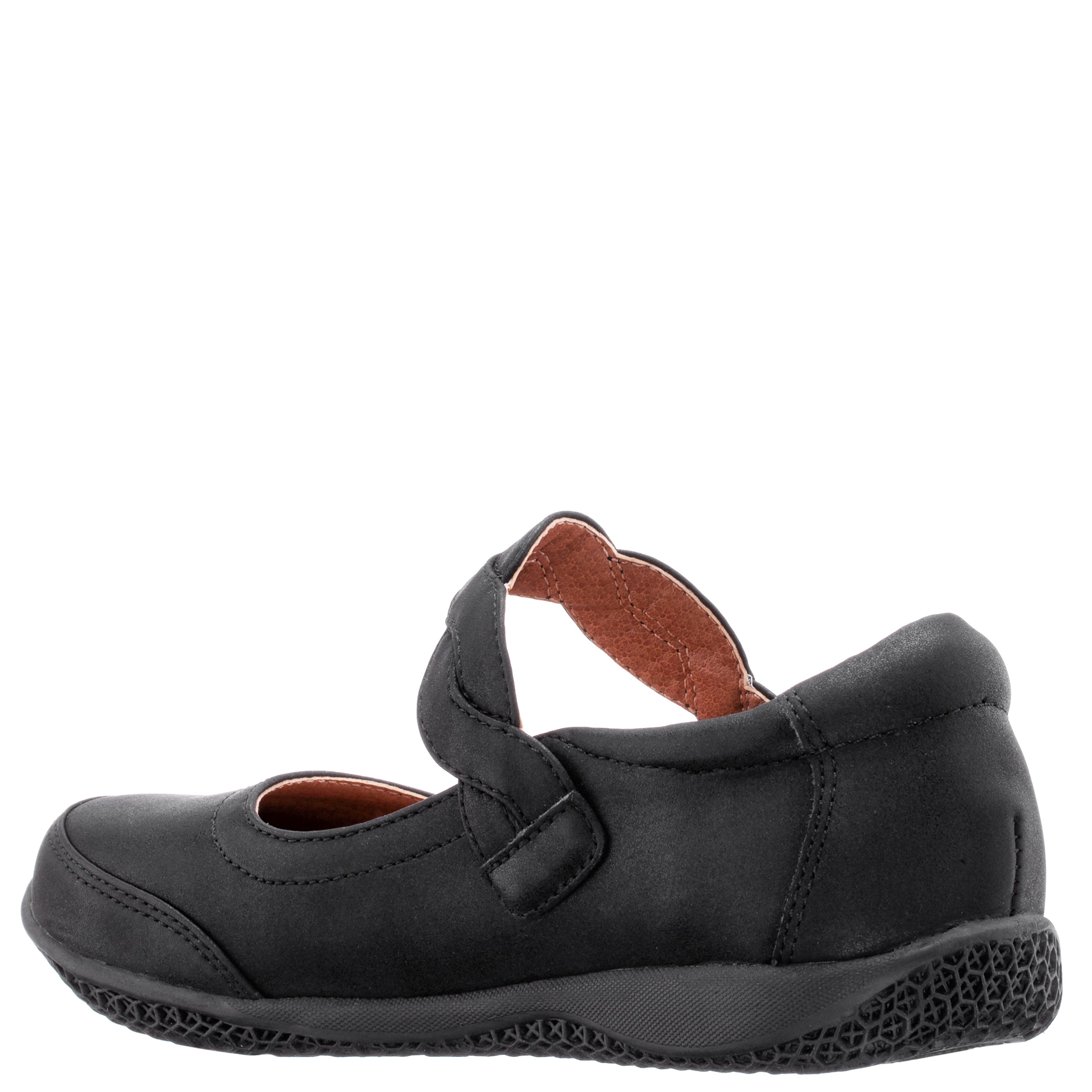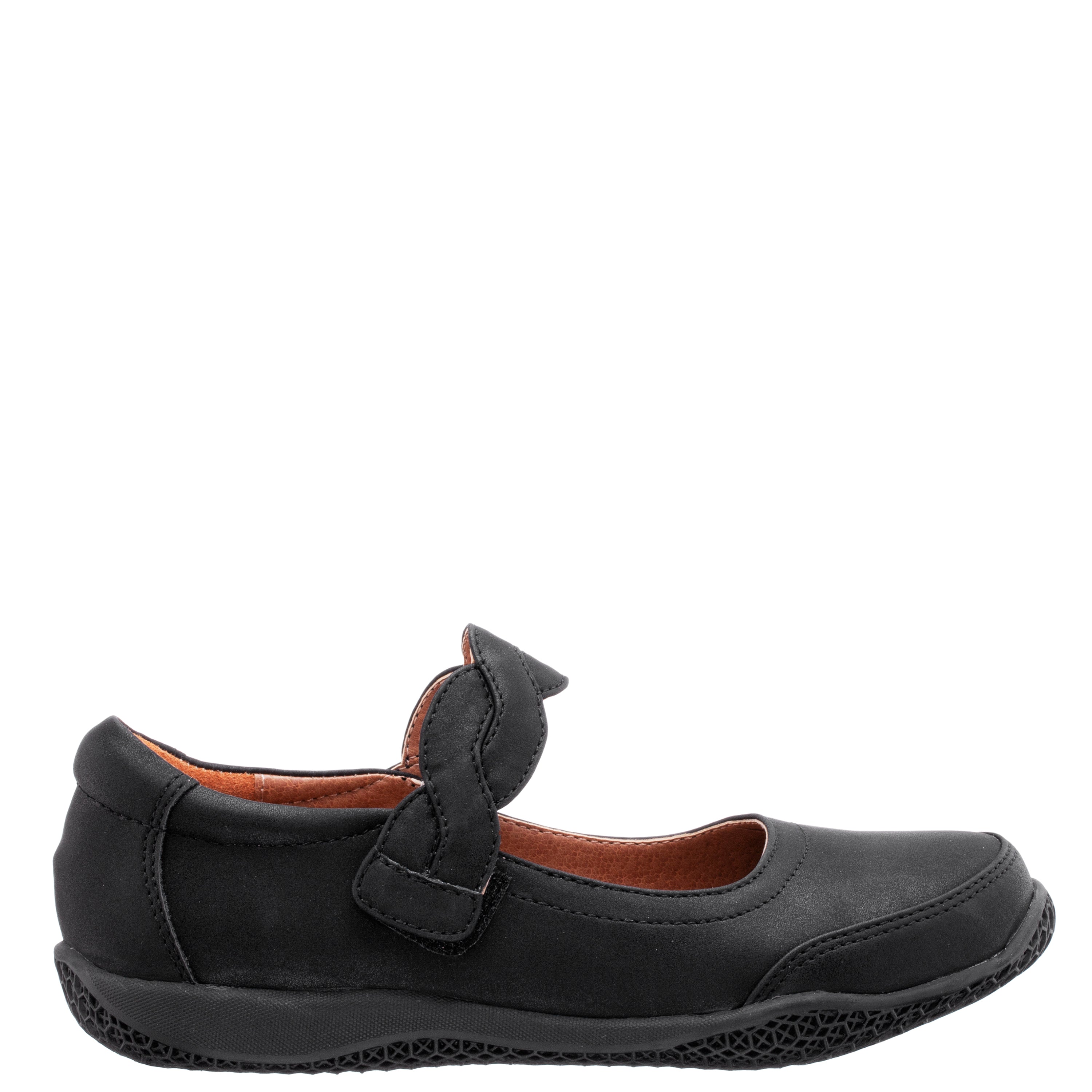 Get back to school in this uber comfy style. The padded collar, flexible outsole and hook and loop strap with decorative woven detail will keep her feeling great and looking poised.