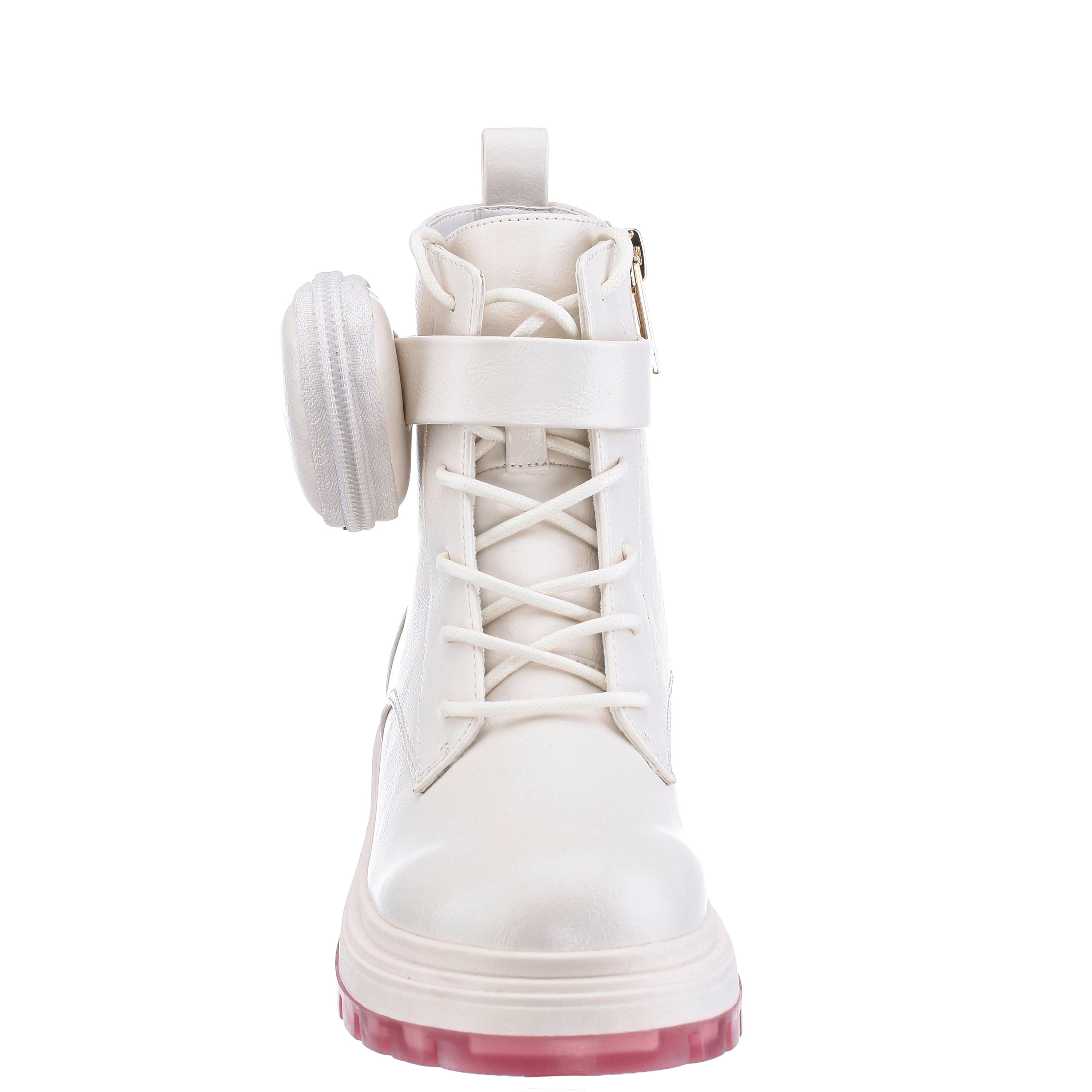 The zipper pouch adds a charming and playful touch to these lug bottom boots. It's not just a cute accessory, but a functional pocket where your child can store small treasures.