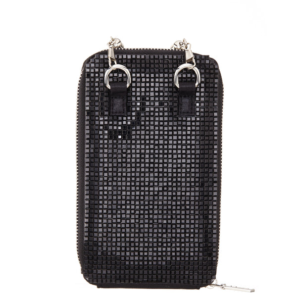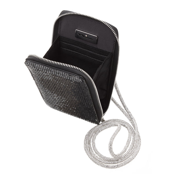 BLACK CRYSTAL ENCRUSTED CROSSBODY CELLPHONE BAG