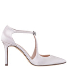 NEOMA Ankle Strap High Heel Step out in style with the NEOMA by Nina Shoes, an ankle-strap high heel pump designed to elevate any look with its timeless elegance. The sleek pointed toe and delicate ankle strap, accented with a crystal ornament, make it perfect for both formal occasions and nights out. With a 3-3/8" high heel that adds height without compromising comfort, and a lightly cushioned insole, this shoe provides all-day wearability. Whether you're wearing it in classic ivory, eye-catching red, sleek black, shimmering silver, or bold platino, the NEOMA delivers sophistication and versatility.Key Features