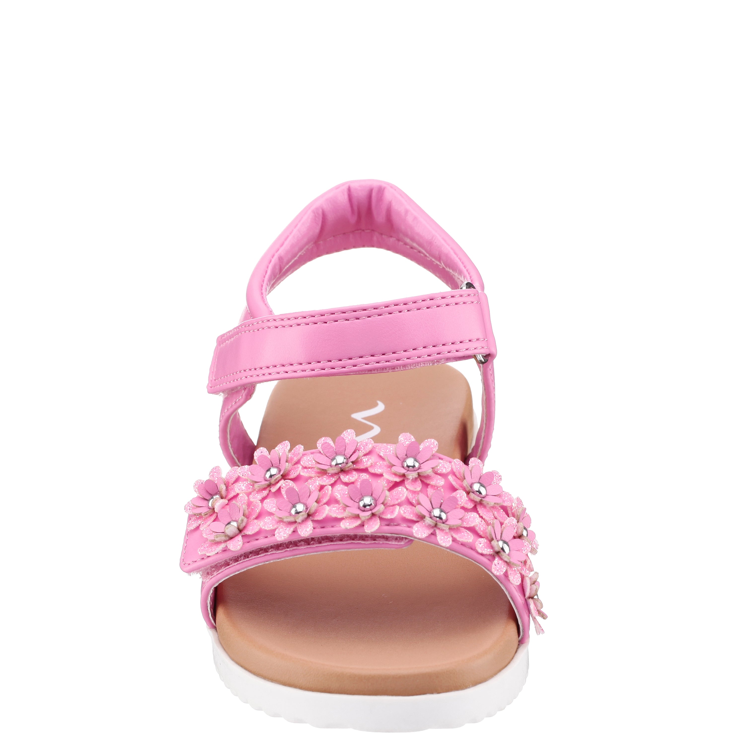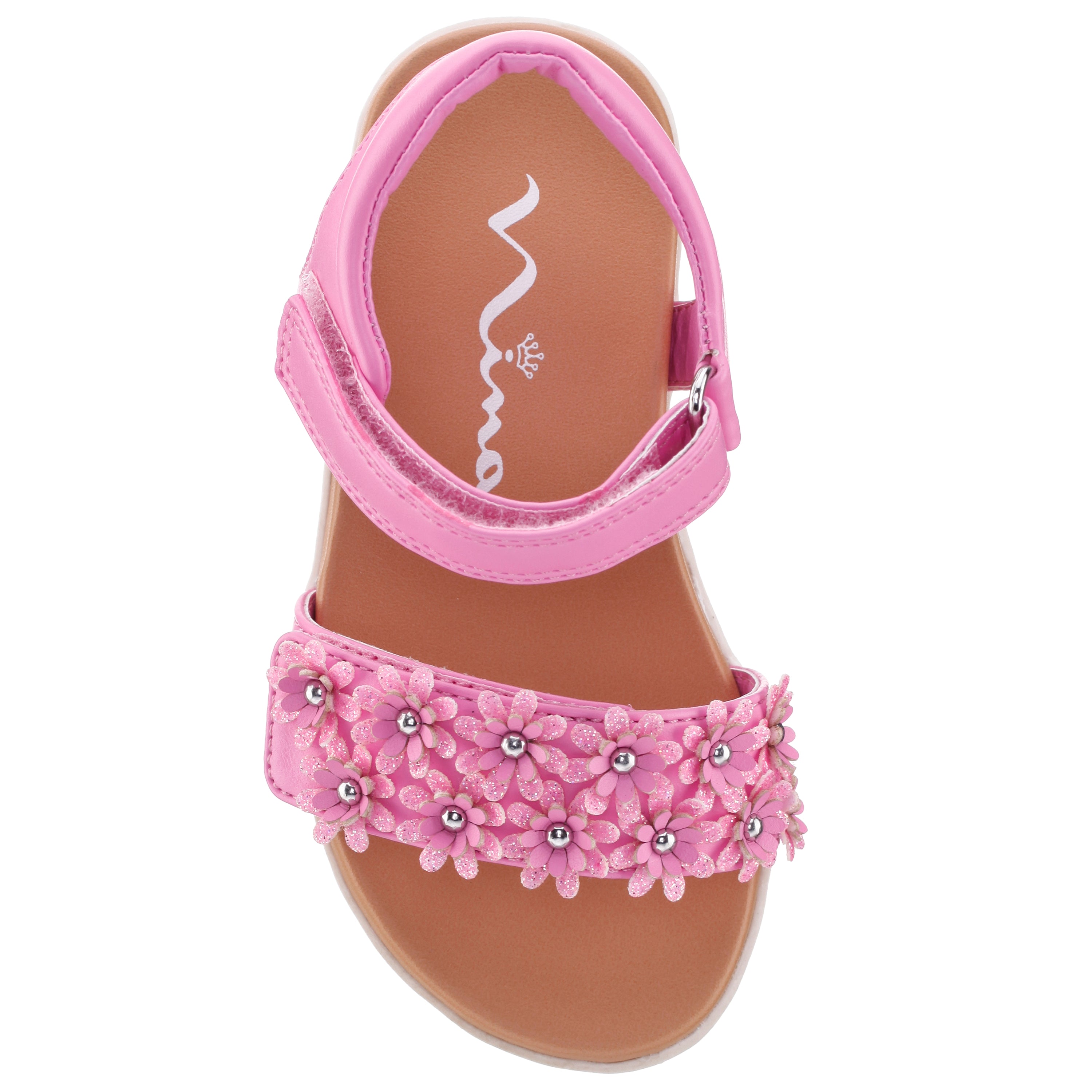 Let her bloom in style with NERIAH by Nina Shoes, a charming girls footbed sandal designed for comfort and playful flair. Adorned with sweet flower appliques and shimmering stud accents, this adorable sandal is made for sunny days and special moments. Dual hook and loop straps provide a secure, adjustable fit, while the contoured comfort footbed and non-slip sole ensure all-day support for every step she takes.