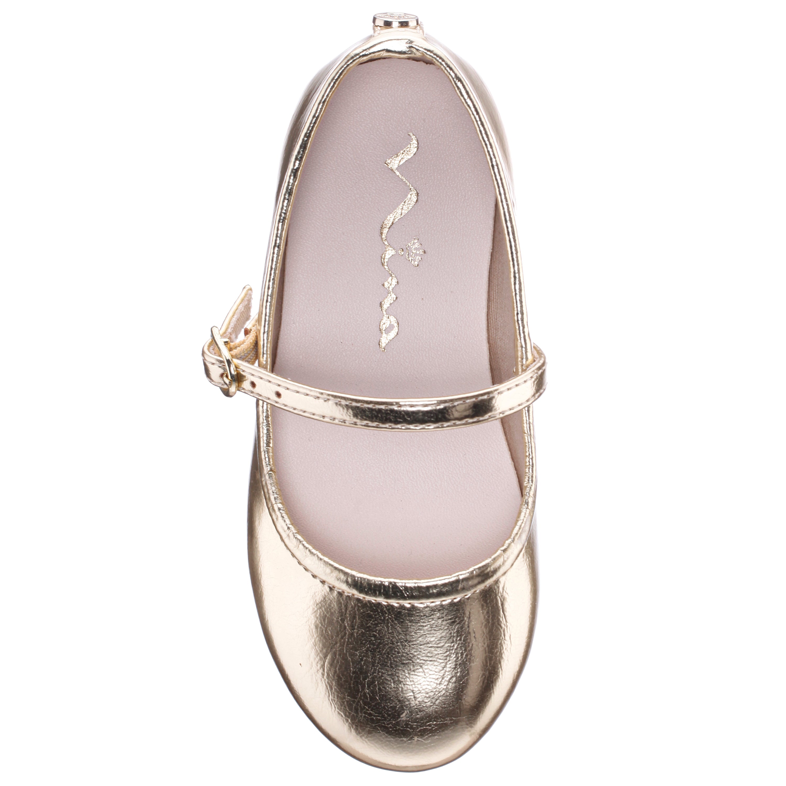 Classic and polished, NICOLA by Nina Shoes is a timeless girls ballet flat designed for versatility and grace. Featuring a round toe and a secure adjustable buckle, this elegant flat brings just the right touch of sophistication to every outfit—from dressy occasions to elevated everyday looks. Crafted with durable man-made materials, a soft lining, and a plush memory foam insole, NICOLA combines comfort and style. The flexible non-slip sole ensures she steps out with confidence every time.