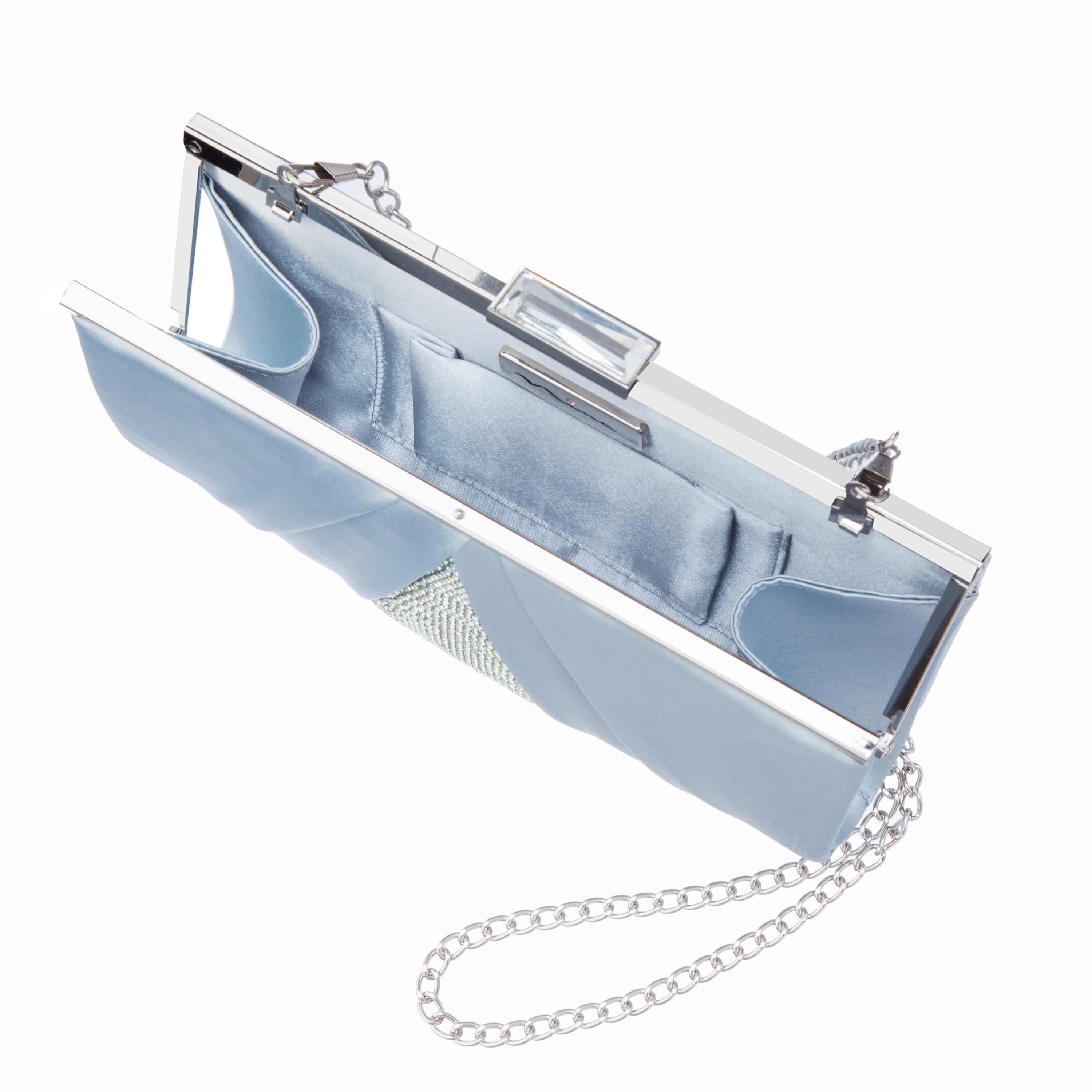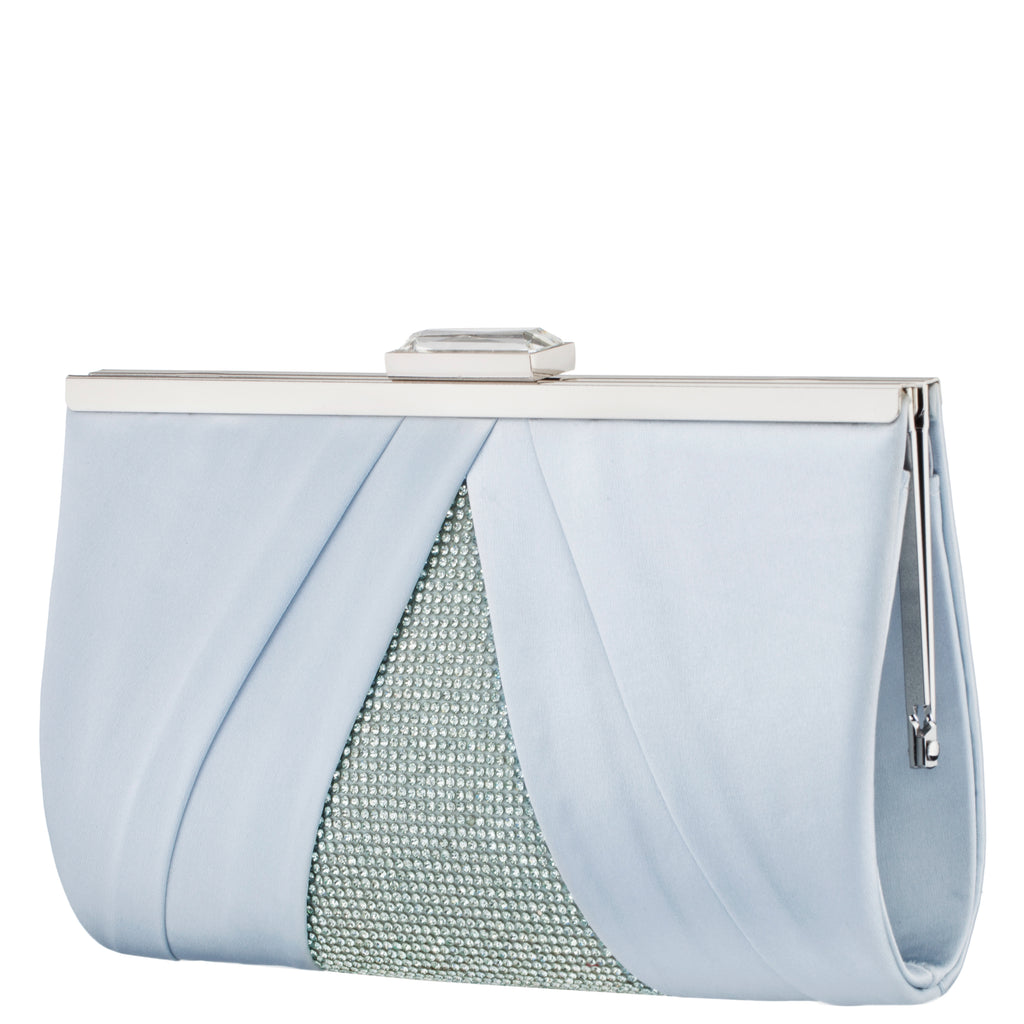 AIR BLUE PLEATED SATIN FRAME CLUTCH
