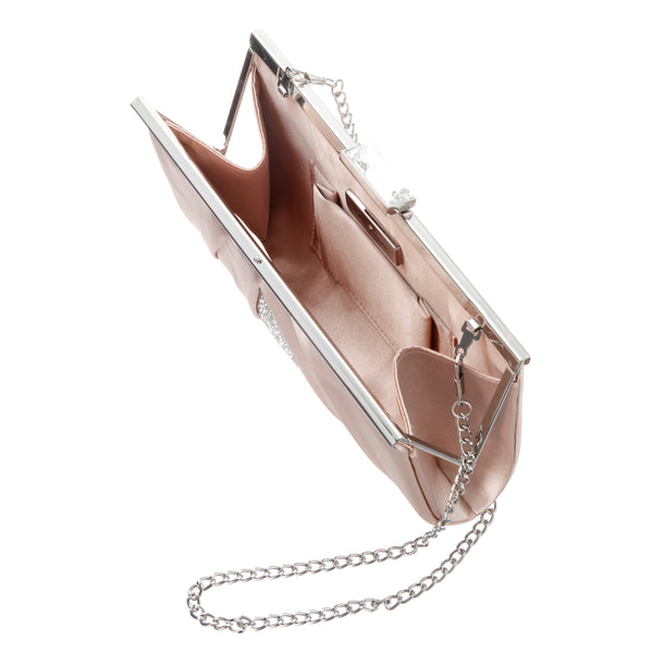 PEARL ROSE PLEATED SATIN FRAME CLUTCH