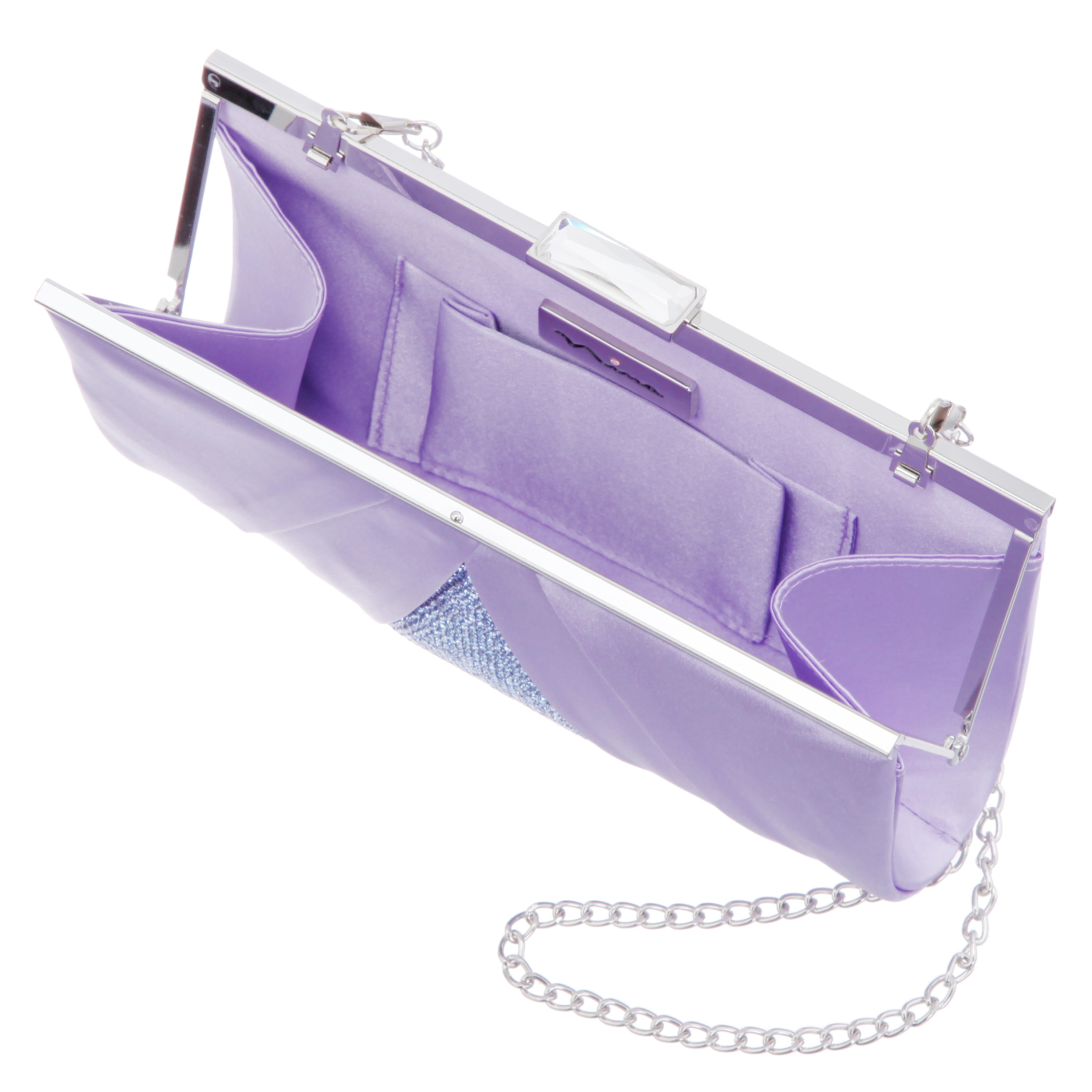 ROYAL LILAC PLEATED SATIN FRAME CLUTCH