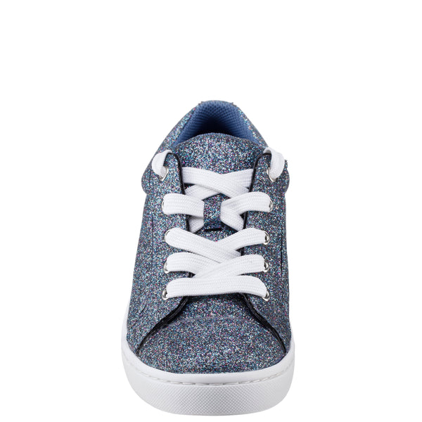 Turn every step into a sparkle moment with PORTIA by Nina Shoes, a dazzling girls low top sneaker designed for fashion-forward fun. Covered in twinkling glitter, this playful lace-up style features a padded collar for extra comfort and classic shoe laces for a secure fit. With a soft memory foam insole and a flexible non-slip sole, PORTIA is perfect for school, playdates, or any day she wants to shine a little brighter.