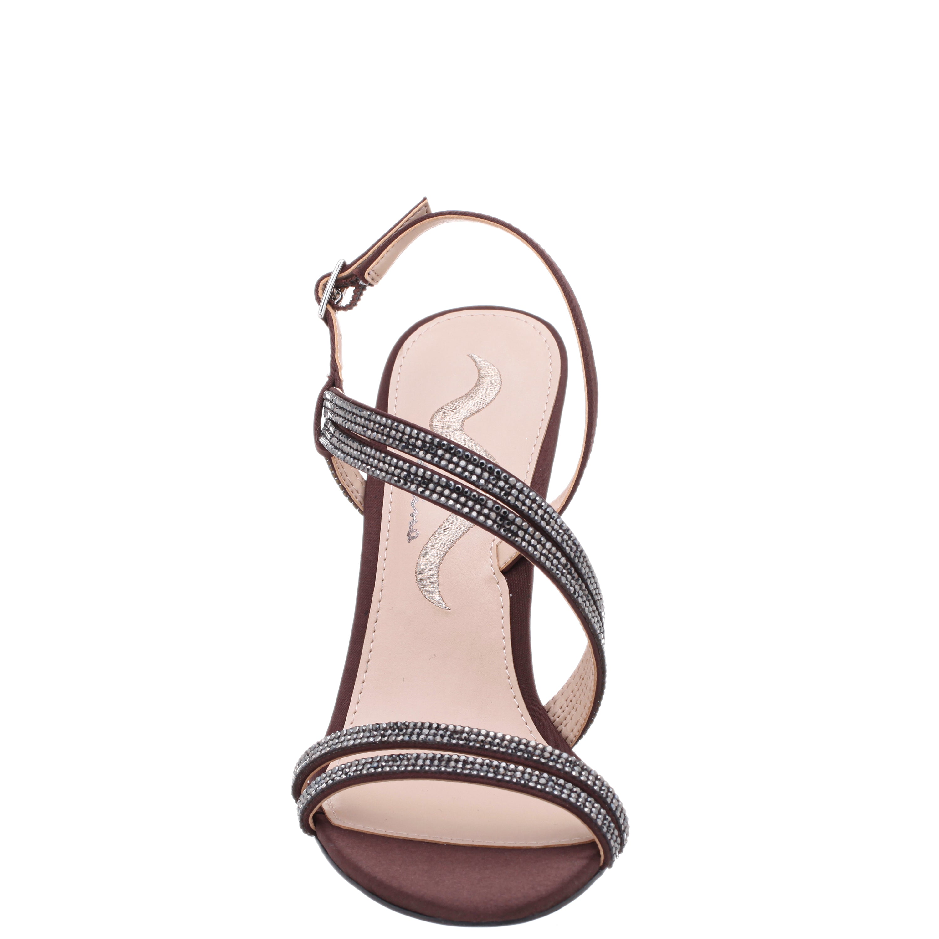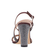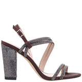 DARK CHOCOLATE CRYSTAL BLOCK-HEEL DRESSY SANDAL