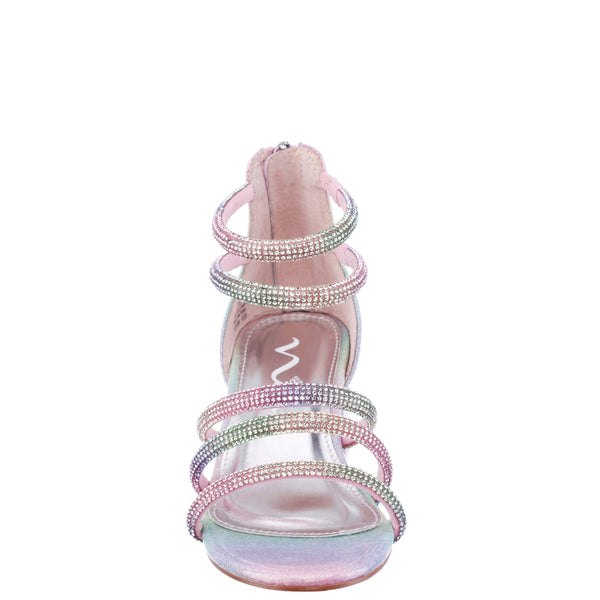 Let her shine with every step in SPARKLAR by Nina Shoes, a dazzling girls dress sandal made to turn heads. With sparkling rhinestone straps and a comfy block heel, this style adds a touch of glam to every party outfit. A back zipper makes slipping in and out easy, while the soft memory foam insole and non-slip sole keep her grounded in comfort and confidence. From birthdays to celebrations, SPARKLAR is her go-to for glittery fun.