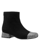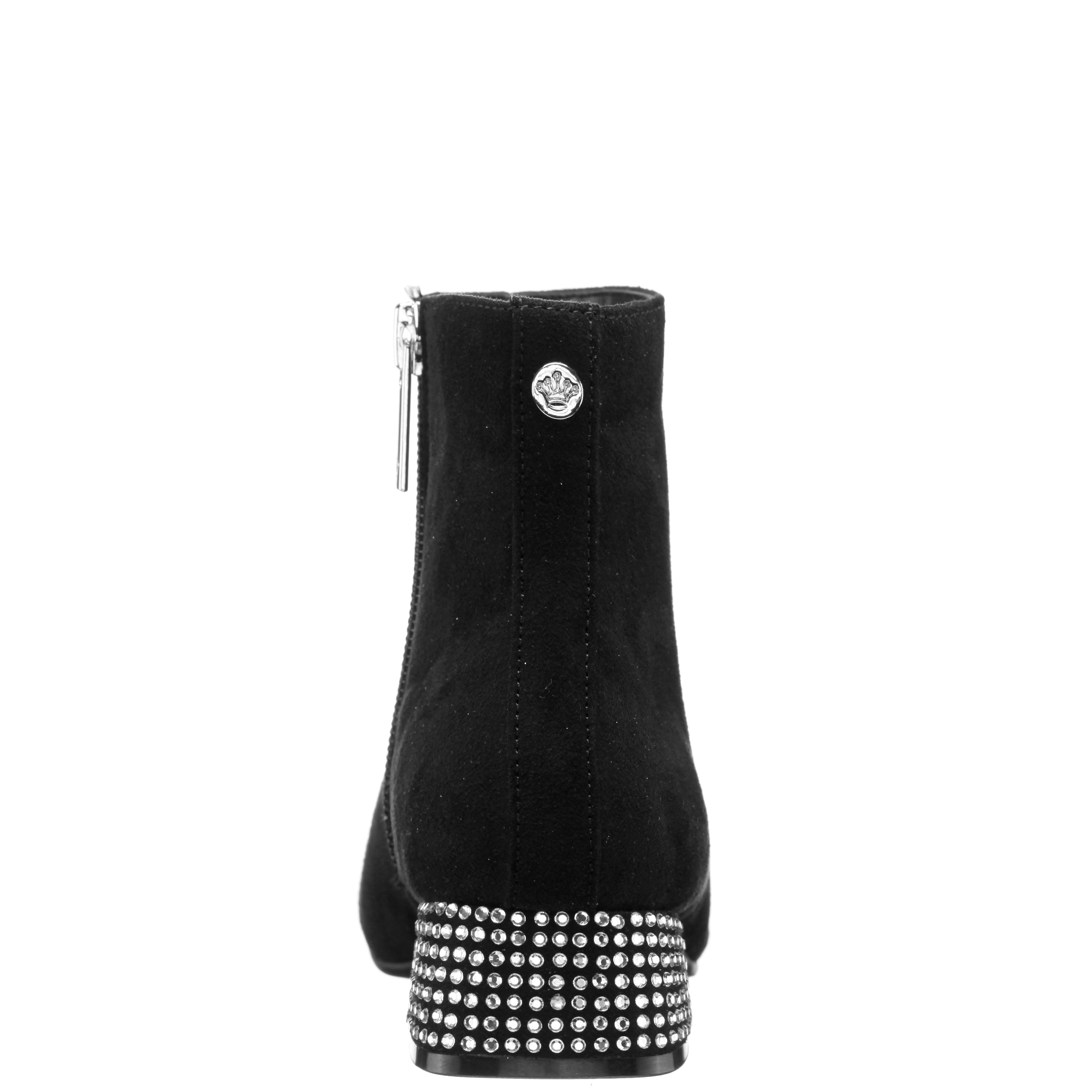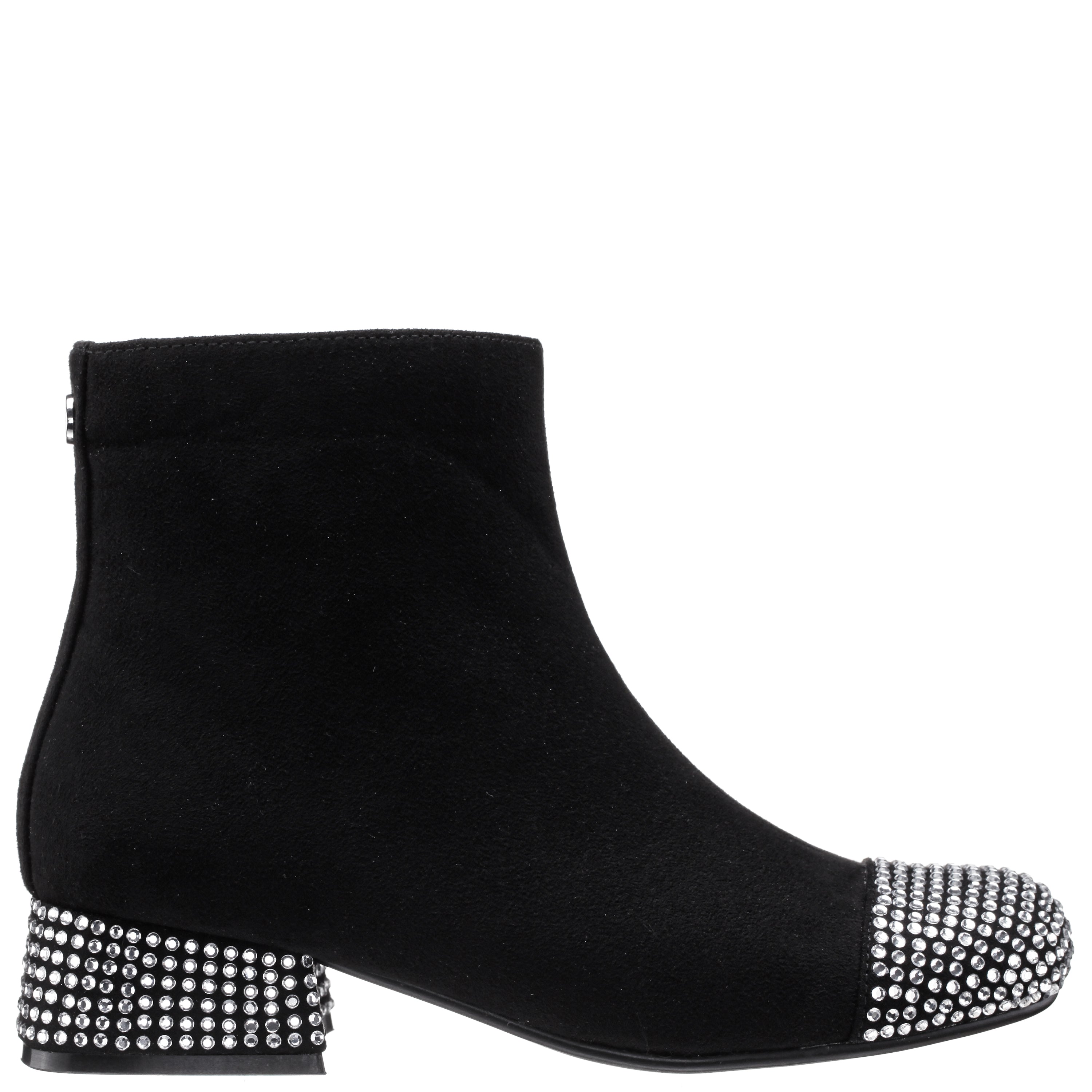 BLACK RHINESTUD FLARE HEEL BOOTS