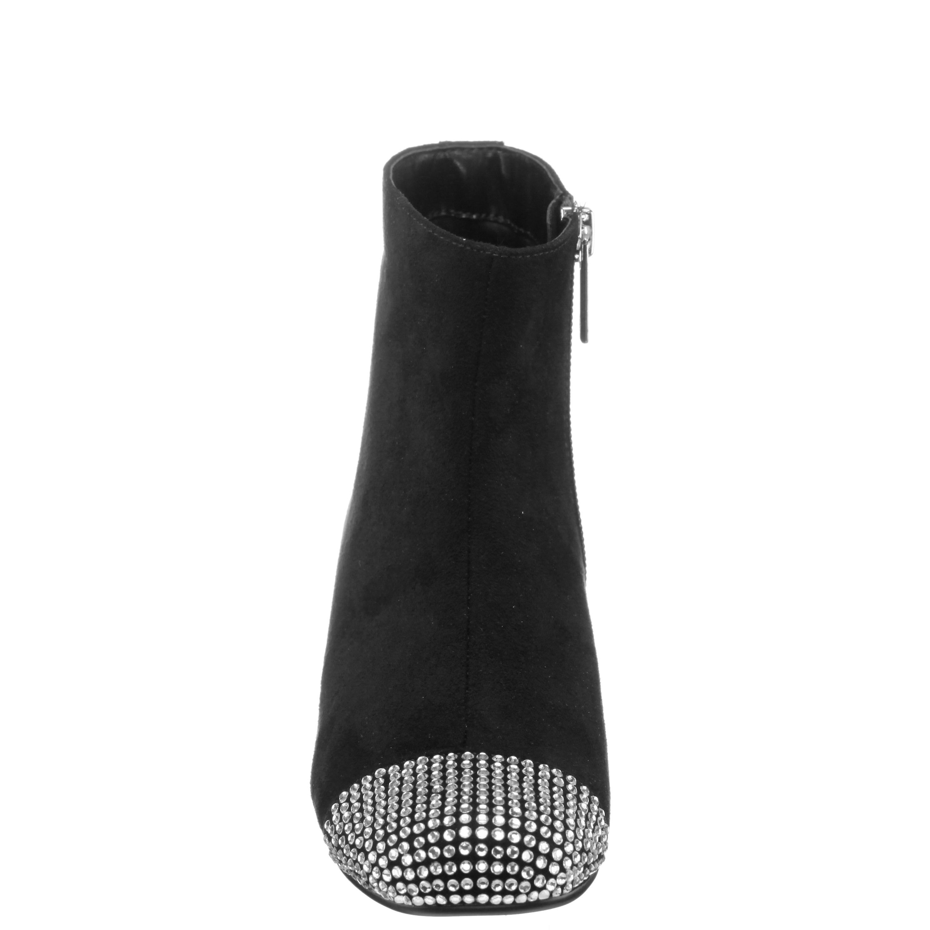 This ultra chic dress boot with sparkling stone/stud embellishments, a soft square toe design, and a chic flared heel is the perfect style for Fall. It's crafted with a convenient metal zipper closure for easy wear.  This trendy dress boot pairs flawlessly with all of your fashionista's favorite looks!