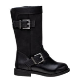 BLACK-SUEDE SIDE ZIP TALL BOOTS
