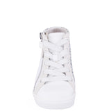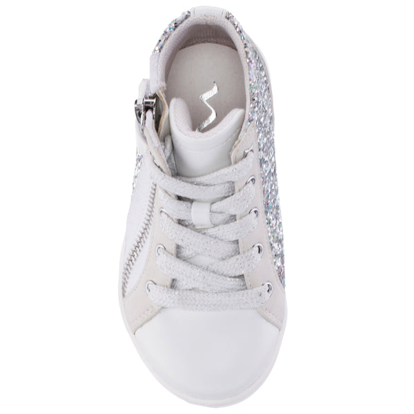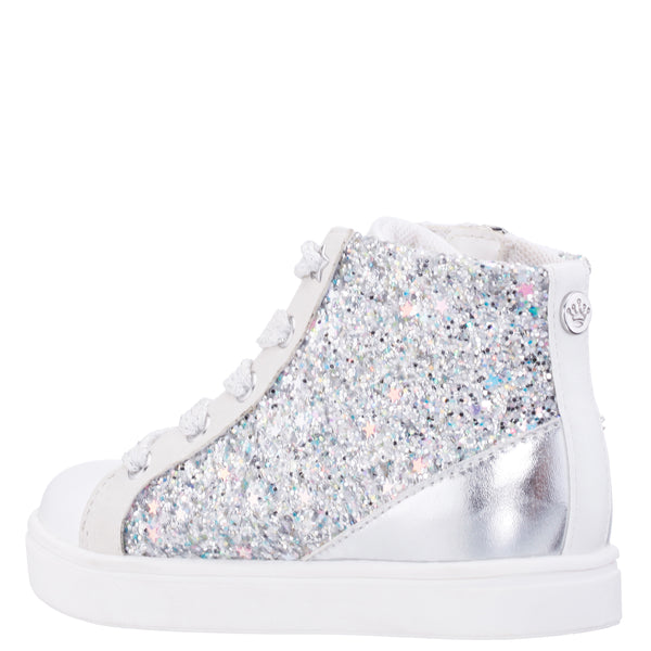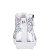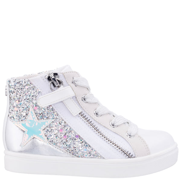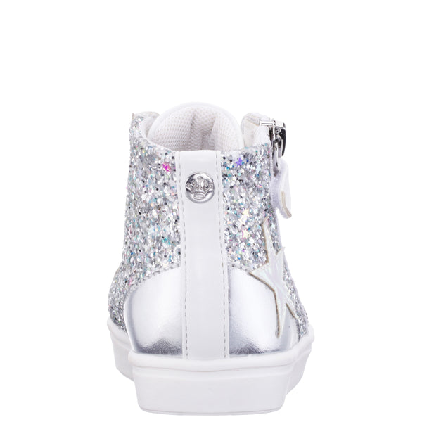 Let her shine like a star in YUTI by Nina Shoes, a playful and stylish girls high top sneaker that’s all about sparkle and comfort. Designed with a glittery finish and bold star applique, this standout sneaker features a convenient outside zipper for easy on-and-off wear. Finished with classic laces, a soft memory foam insole, and a flexible non-slip sole, YUTI is the perfect pick for everyday fun, school style, and everything in between.