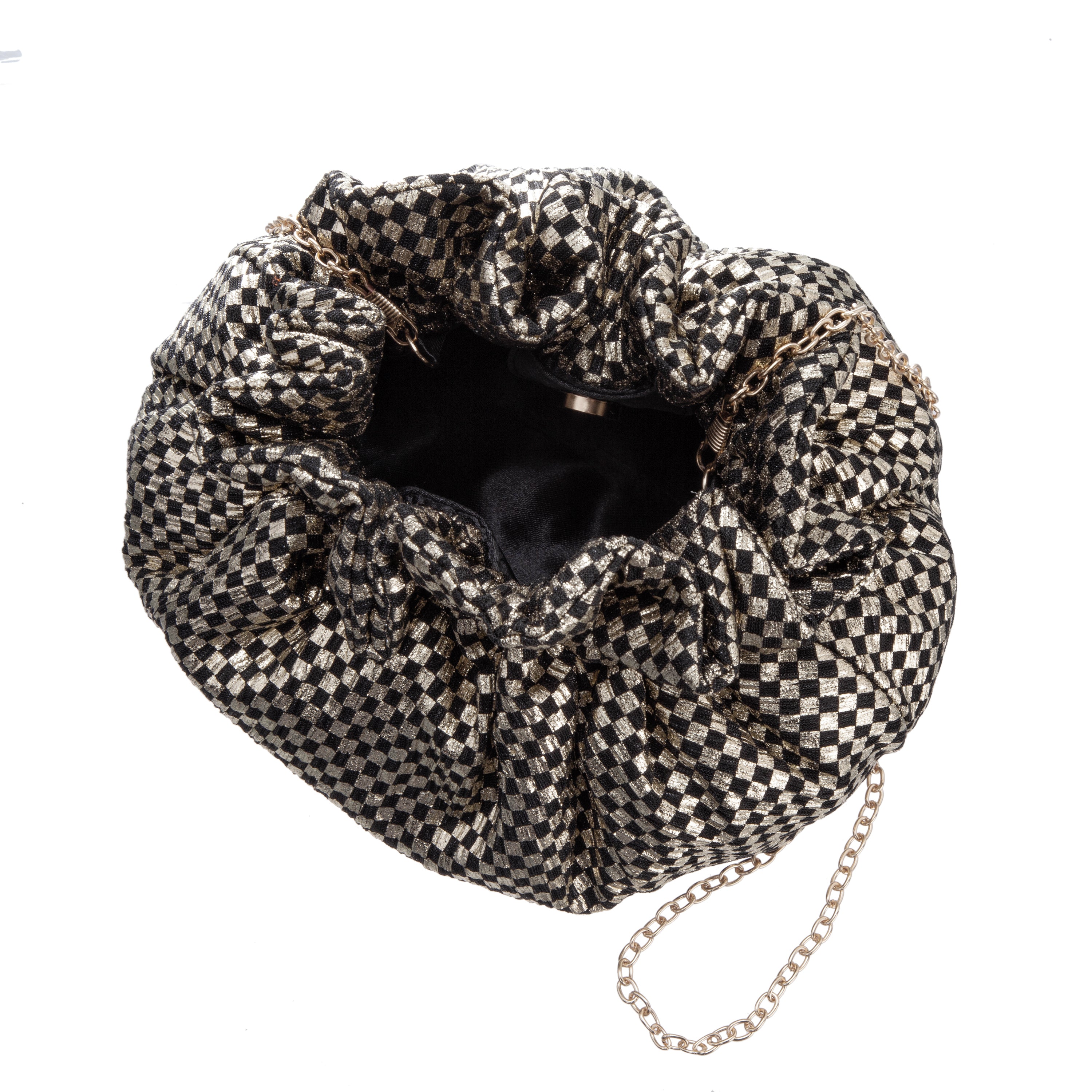 METALLIC CHECKERBOARD RUCHED CROSSBODY BAG