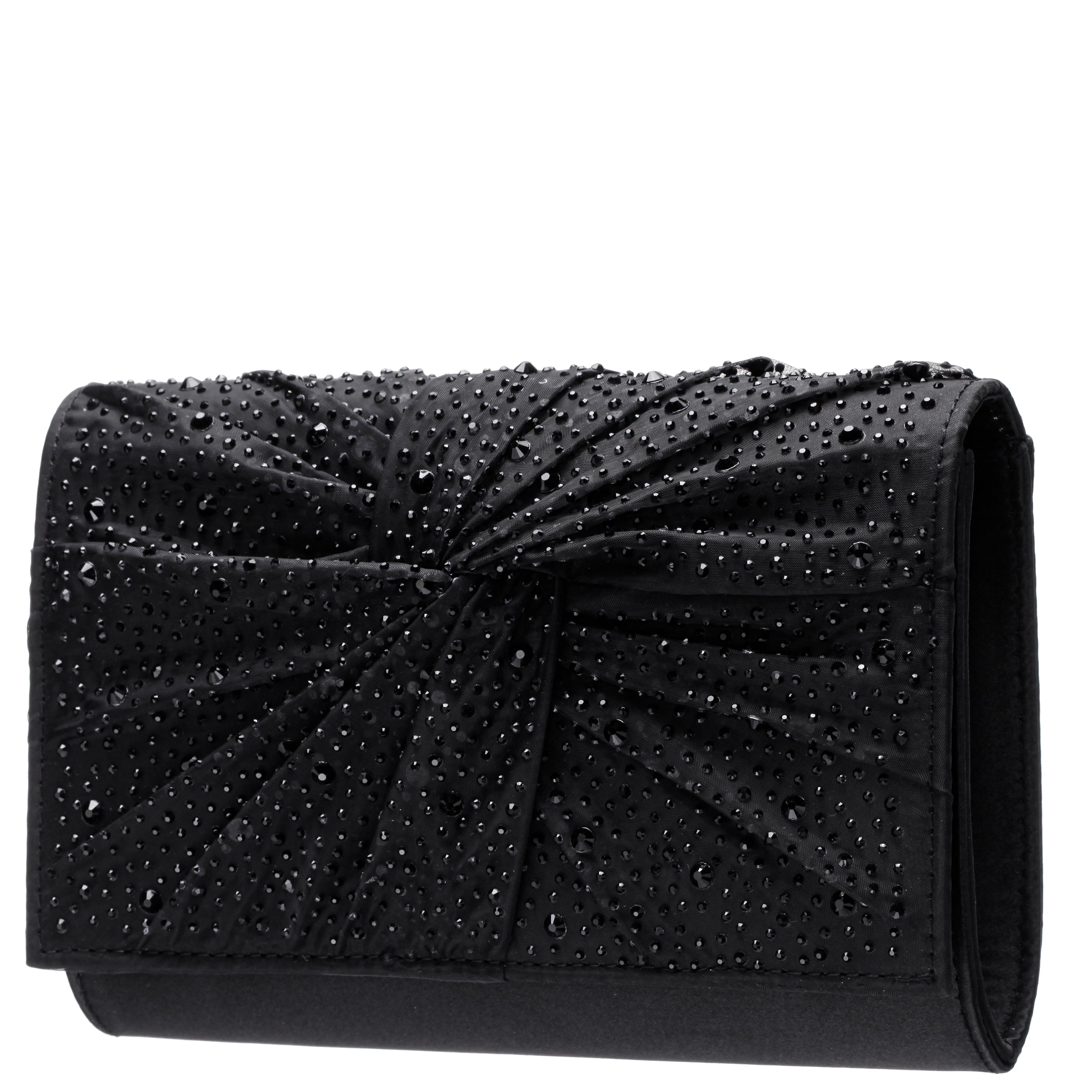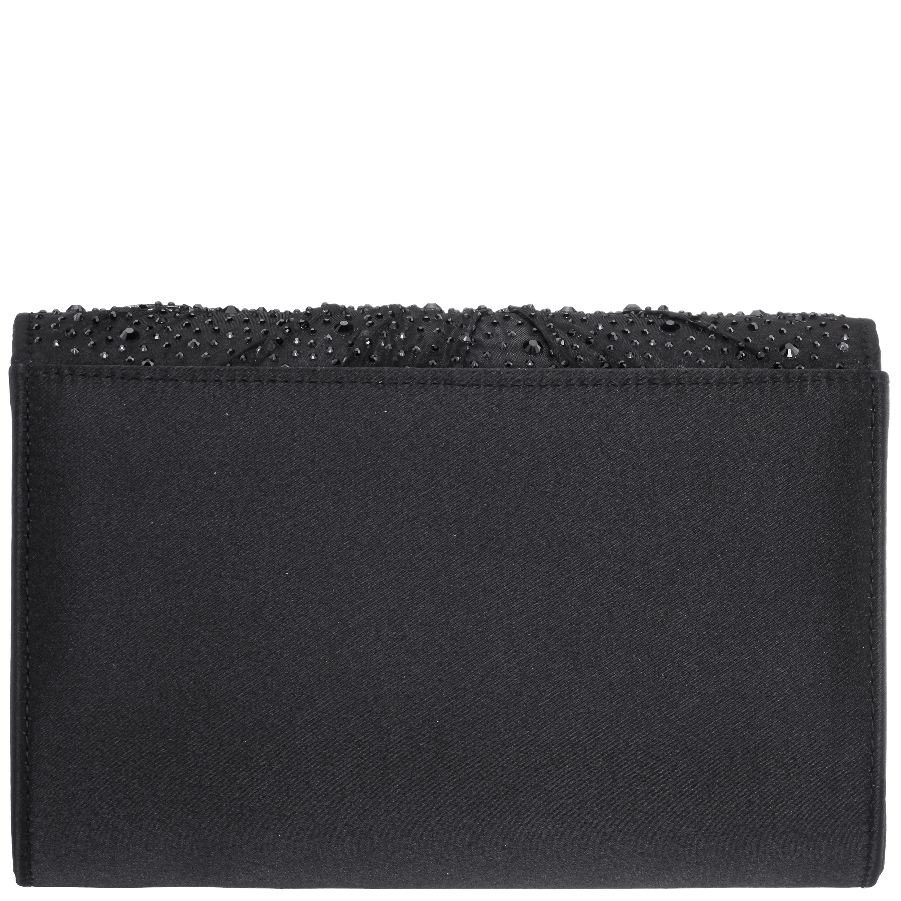 ZORIA by Nina is the perfect blend of softness and sparkle, designed for moments that call for understated elegance. This twist-flap clutch features delicately draped chiffon layered over satin, accented with a glistening crystal embellishment that adds just the right amount of shine. The slim, structured silhouette pairs beautifully with any evening look, while a magnetic snap closure and optional 18" chain strap make ZORIA as practical as it is glamorous. For complementary styles, explore our satin shop or browse our newest arrivals.